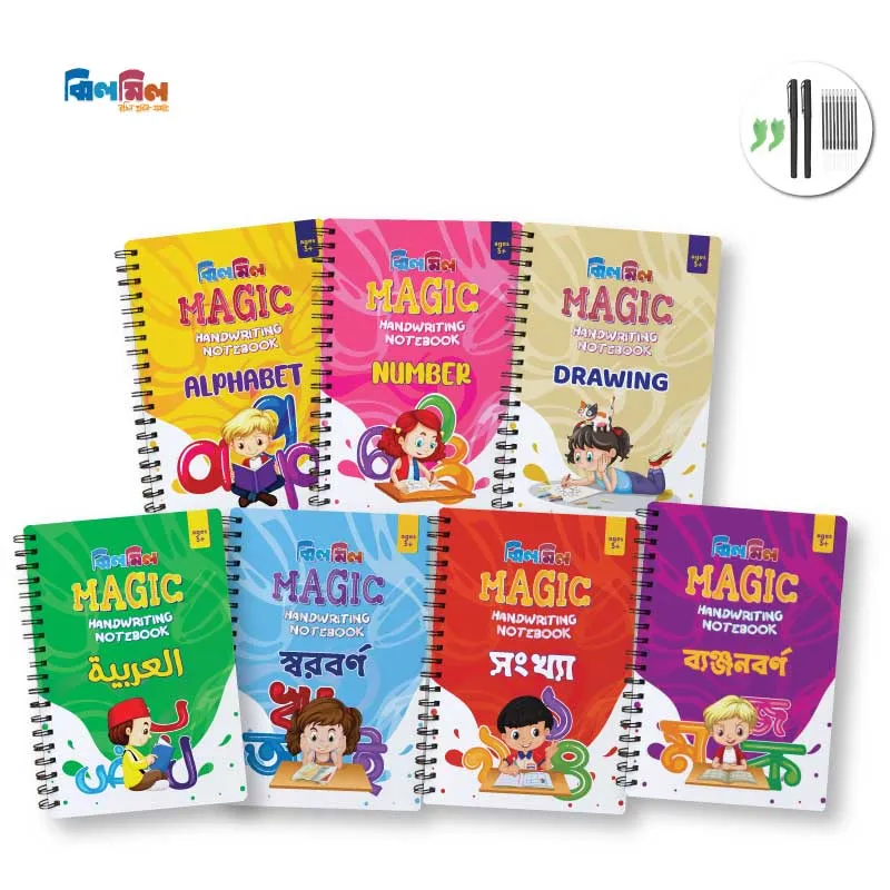 ঝিলমিল ম্যাজিক হ্যান্ডরাইটিং নোটবুক (ম্যাজিক খাতা) বড় সাইজের 7 টি খাতা